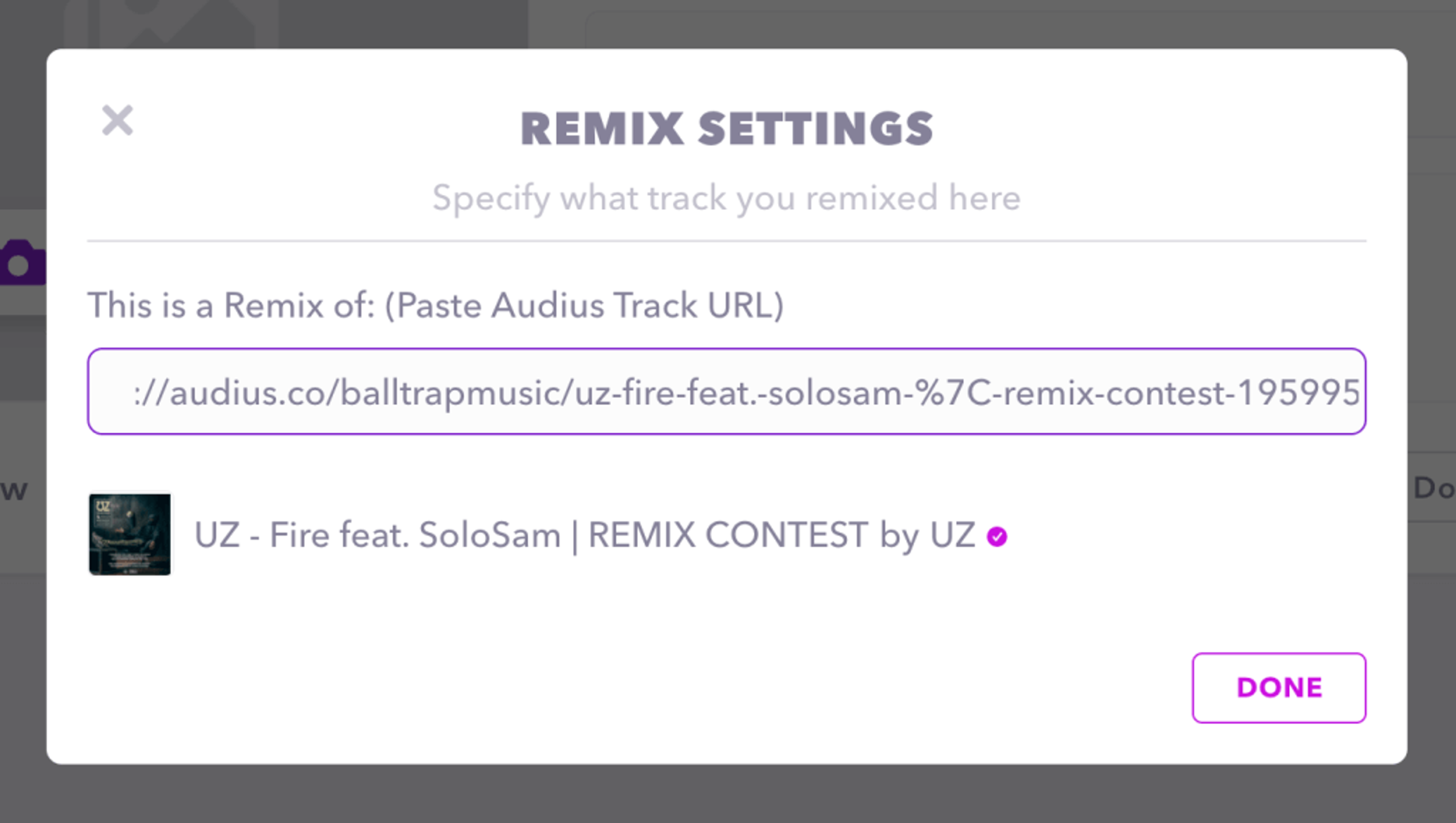 When uploading a track, clicking this field will prompt you to paste a link to the track being remixed.