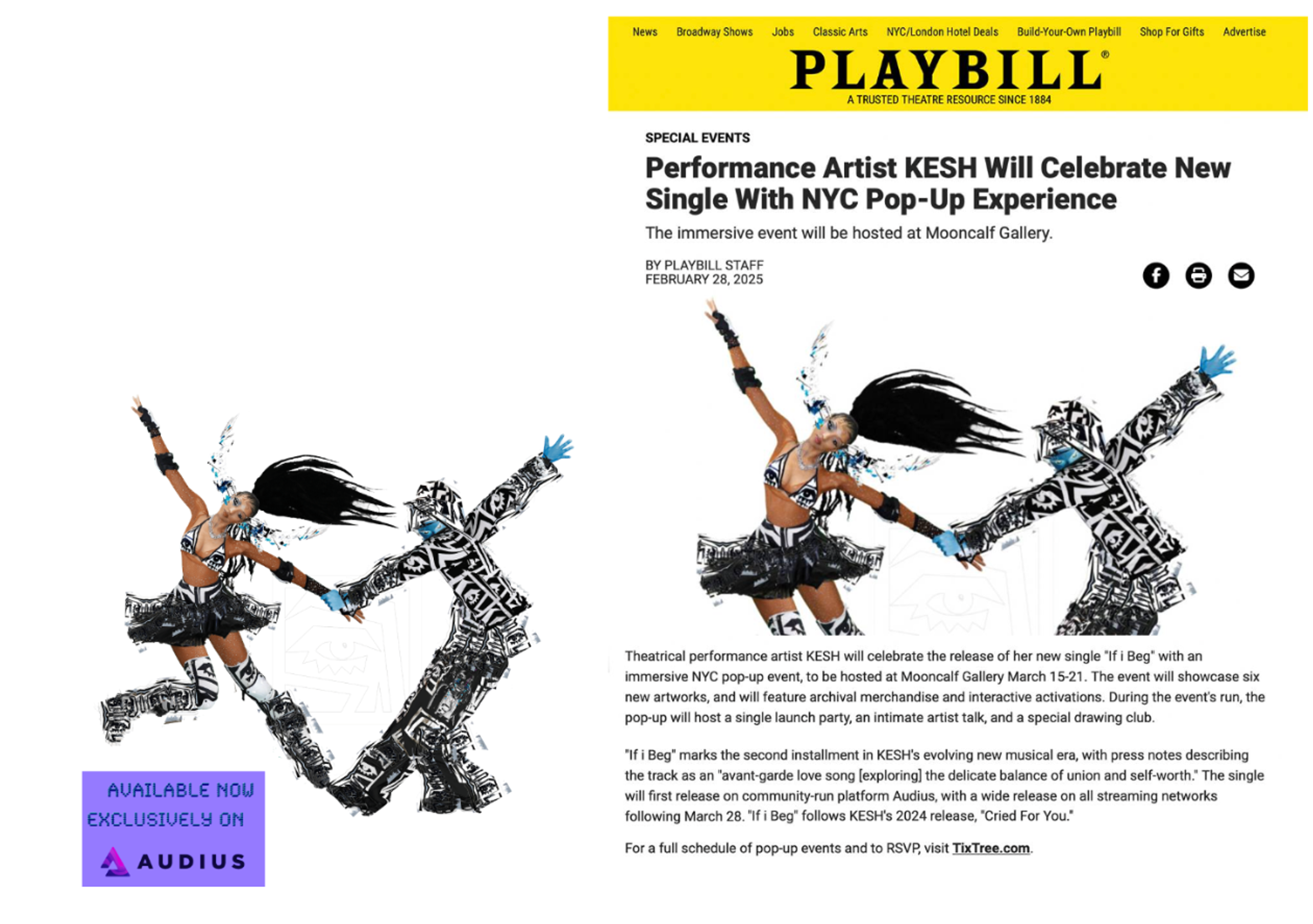 PLUS! – KESH’s latest release is making waves beyond the Audius platform, earning a feature in the theatre and entertainment publication PLAYBILL. Be sure to check it out!